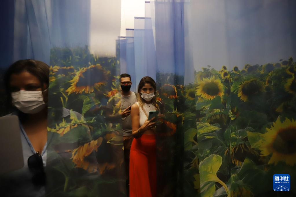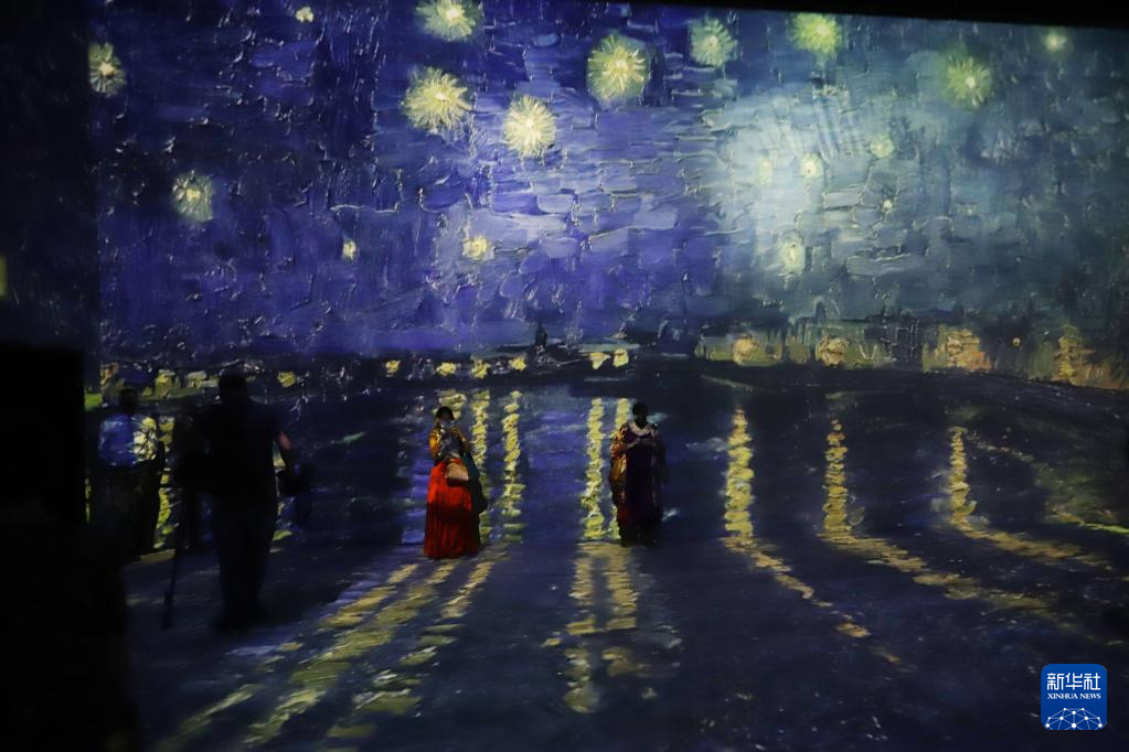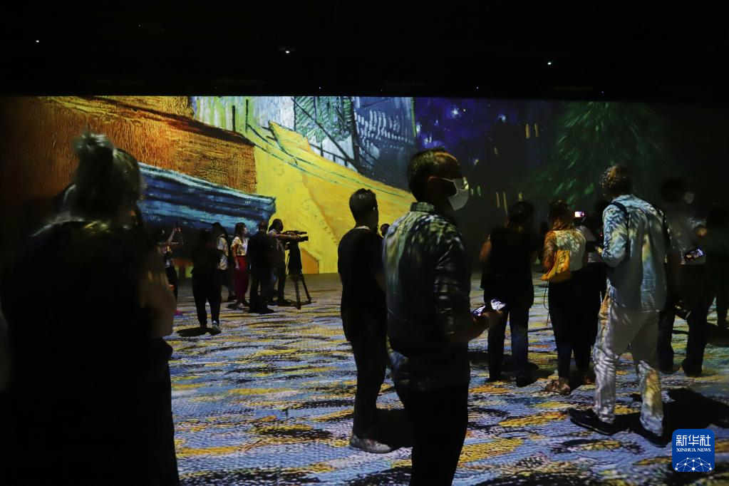 3月16日,参观者在巴西圣保罗参观以梵高为主题的沉浸式多媒体展。