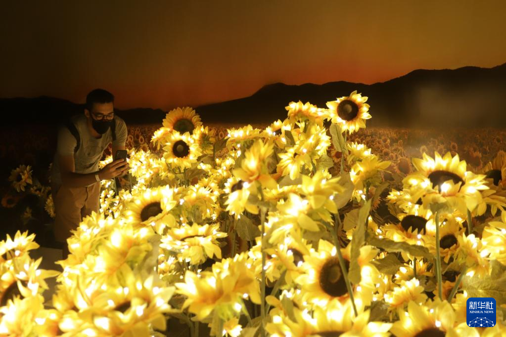 3月16日,一名参观者在巴西圣保罗参观以梵高为主题的沉浸式多媒体展。