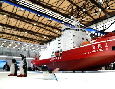 同样表现时代发展面貌的新年画作品还有叶文杰的《一飞冲天》和彭芷园的《第四十次南极科考:罗斯海站庆新年》。前者以中国航天员形象作为画面主体,并在背景中融入飞机、火箭、卫星等科技元素和玉兔、祥云等传统图案,讴歌了中国航天事业取得的辉煌成就;后者则将手持望远镜和蓝图的南极科考队员与拟人化的企鹅,以及由我国自主建造的极地科学考察破冰船“雪龙2”号等元素并置于一画,彰显出国之重器的磅礴力量。