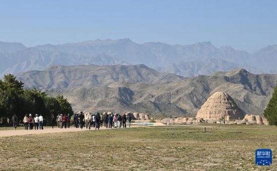 与会专家学者在宁夏银川西夏陵遗址进行学术考察(10月13日摄)。