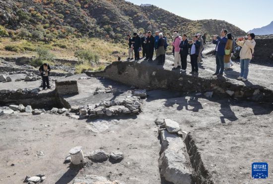 与会专家学者在宁夏贺兰苏峪口瓷窑址进行学术考察(10月13日摄)。