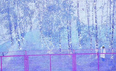 其次,朦胧美学在当下的青年绘画中体现得非常明显。此种倾向在前些年“新工笔”绘画中初见端倪,如今已发展到其他多个画种,体现为更加丰富的类型,如雾气弥漫之感、物象消弭之感、墨色流动之感、水乳交融之感……当然,新类型的出现往往需要依托新的技法。在水墨画中,除了传统泼墨技法所营造的墨、彩流动感之外,当前更常见的是依靠在纸面、绢本进行层层晕染来营造,其色彩过渡显得更加圆润、均质。为了强化这种朦胧感,一些艺术家在画面上完全使用淡淡的透明色,不落一笔重色。还有一些作品消解部分物象的轮廓线,甚至整幅画完全不进行勾线,呈现出空灵的意境。本届展览中,不少漆画和油画作品也出现朦胧美学的倾向。如江文佳在漆画《扶摇长空阅丘山》中,描绘了体积虽小却数量庞大的叶片——树上的、空中的、地面的,近看刻画清晰,远看却犹如色点般弥散开来。又如张学的油画《小城故事系列五》中,艺术家用较薄的颜色来描绘,不做过多细节刻画,但用油较为饱满,几乎看不到油画颜料的堆积性和覆盖性,亚麻布的肌理完全暴露在观众眼前,整个画面笼罩在和煦的暖色氛围之中。这种朦胧风格的盛行,无疑与中国传统美学的复兴有着密切关系,老子“大象无形”的哲学观念,以及中国古代艺术中的空灵、虚实相生、意在言外等美学趣味,为当代许多青年人所接纳和青睐。当然,在意境之外,有些作品也要面对主题形象不够鲜明、观众对画意感到困惑等问题。