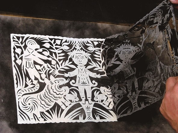 富县薰画是陕西省富县特有的民间美术形式,承载着黄土高原的文化习俗与烟火温情。手艺人取一方素纸、一把剪刀、一盏油灯、一杆画笔,经剪刻、熏染、彩绘等工序,让烟缕与彩墨相融,化作一幅幅浸染着乡土气息的艺术品。不同于笔墨丹青的雅致,亦别于刺绣织锦的华美,富县熏画凭借其朴拙浑厚的风格,将黄土高原的生活点滴以及人们对未来的美好期许凝于纸间,成为这片土地独特的文化印记与美学符号。