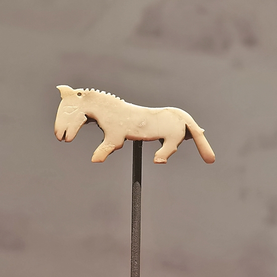 与玉兵器的肃穆庄重形成鲜明对比的,是妇好墓中充满生趣的玉质“动物园”:玉熊、玉鹰、玉牛、玉猴、玉螳螂、玉鹦鹉……这些玉器虽朴拙,却捕捉到了动物的动态神貌。比如一件玉虎,两耳后伏,背隆起,短尾略上翘,四肢前屈,作行走状,仿佛正威风凛凛地巡视领地,尽显商代晚期精湛的玉雕工艺技术。其中,妇好墓出土的一件玉马,荣获住“单间”的殊荣——其玉质温润光泽,造型古雅生动,恰逢马年,更添一分吉祥寓意。这只小马,也是国内目前所知最早的马形象。