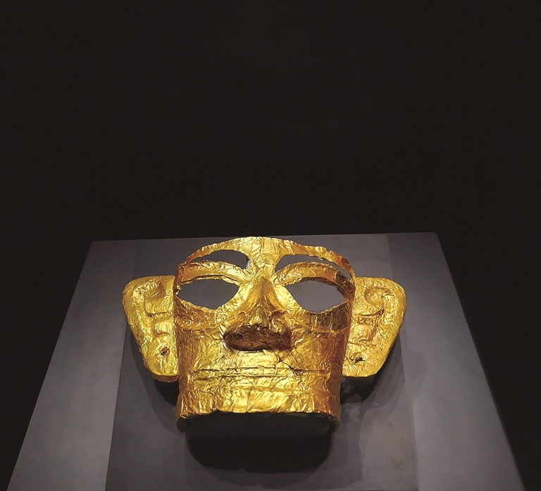 三星堆遗址出土的金面具(商)光明日报记者李韵摄/光明图片